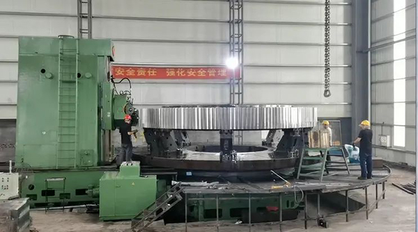 美卓公司來圖定制的φ8221大齒輪,材質(zhì):ZG45CrMo,是目前豫北地區(qū)生產(chǎn)蕞大磨機大齒輪,其質(zhì)量要求更是完全超過了國內(nèi)標準,要求UT、MT一級探傷。